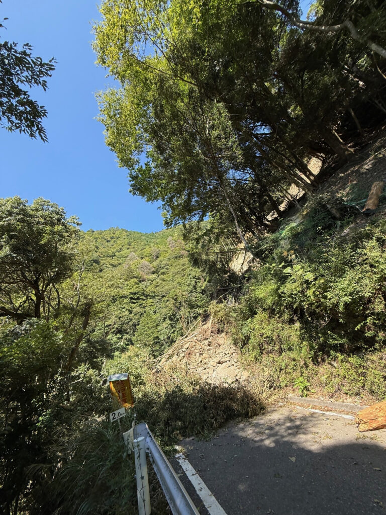 9月14日(日)朝、市道閑蔵線にて奥泉ダム貯水池付近で土砂崩落が発生し、現在も全面通行止めとなっています。
