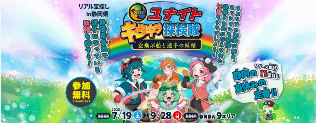 ユナイトキラキラ探検隊 リアル宝探しin静岡県(㈱SBSプロモーション) 2025/09/29 取組内容 県内9エリアをめぐるトヨタユナイテッド静岡株式会社主催の体験型イベント 「ユナイトキラキラ探検隊 リアル宝探しin静岡県」において、 南アルプスユネスコエコパークミュージアムをスポットとして組み込み、来館のきっかけを創出。 今年新設されたミュージアムの活用をし、集客促進と施設認知の向上に寄与しました。 実施時期 2025年7月19日(土)~9月28日(日) 取組団体 株式会社SBSプロモーション